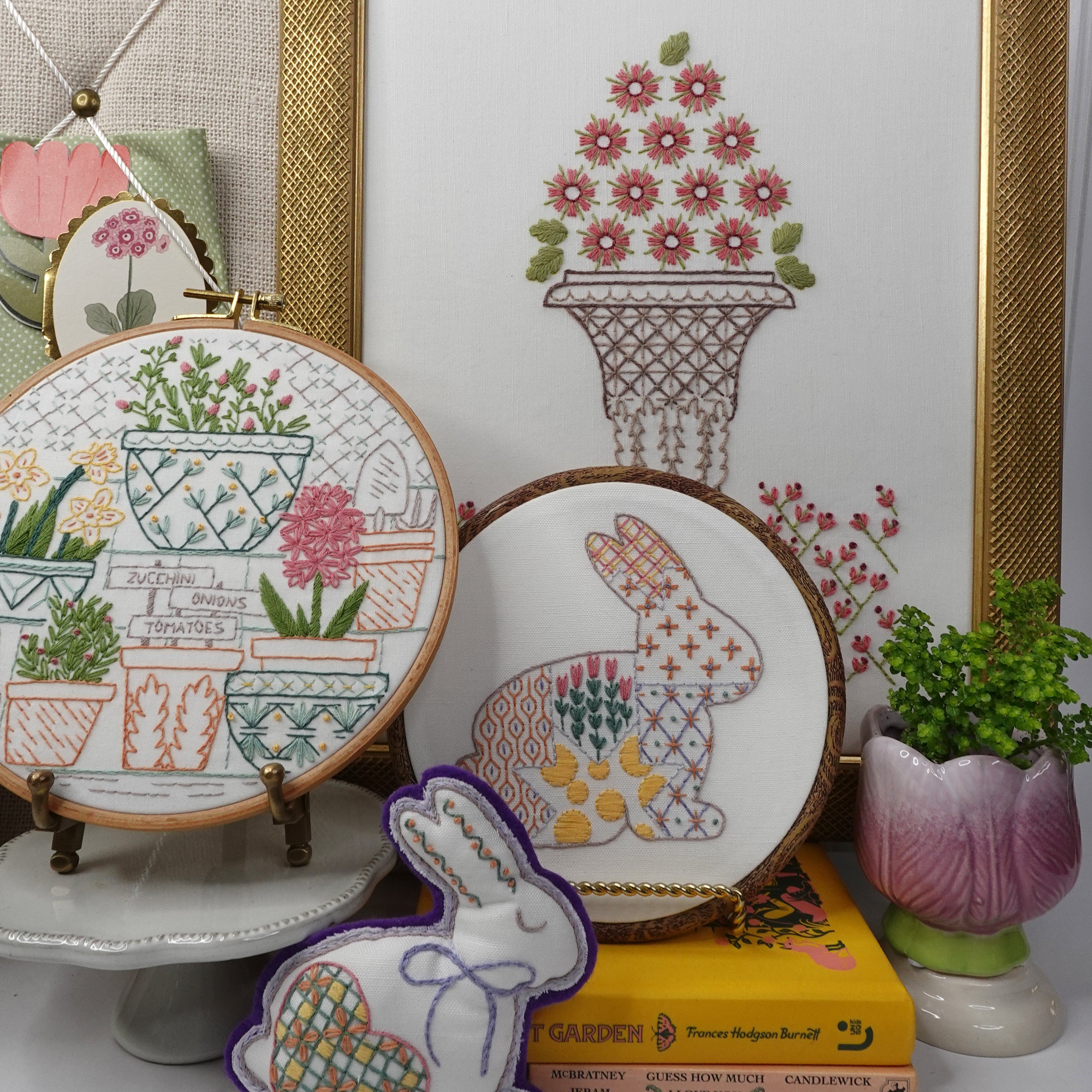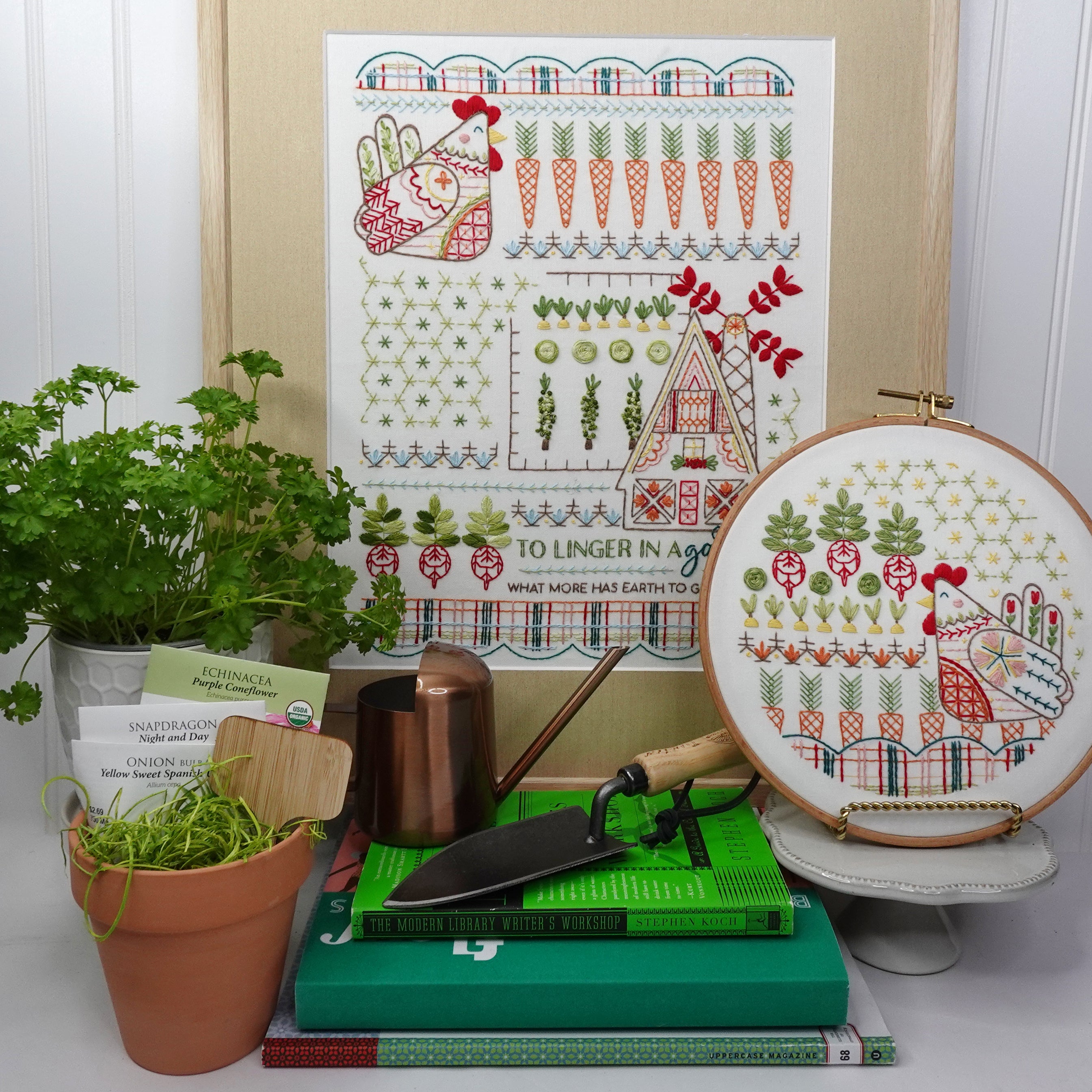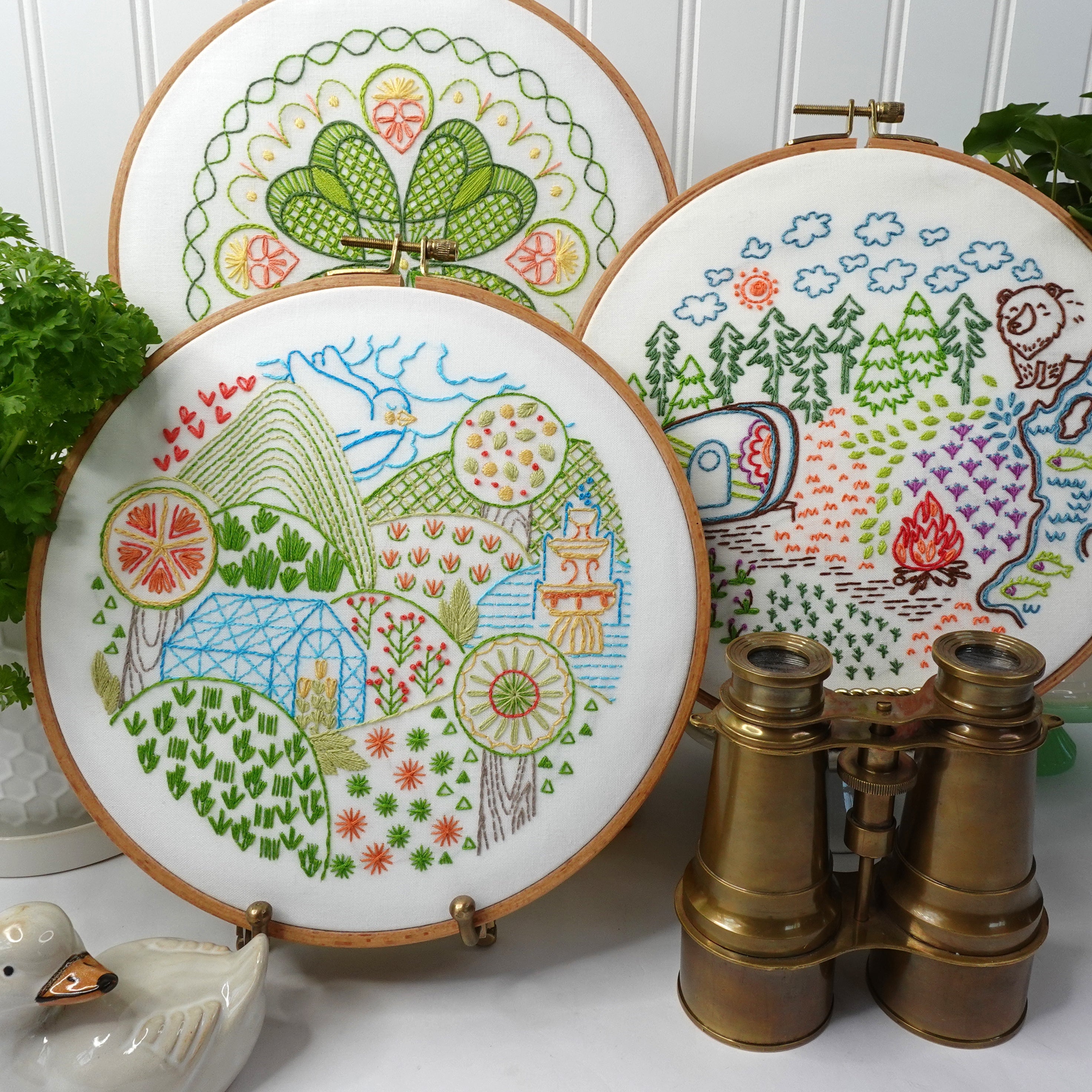 Lean into the green of early summer with embroidery designs inspired by rolling hills and garden plots.