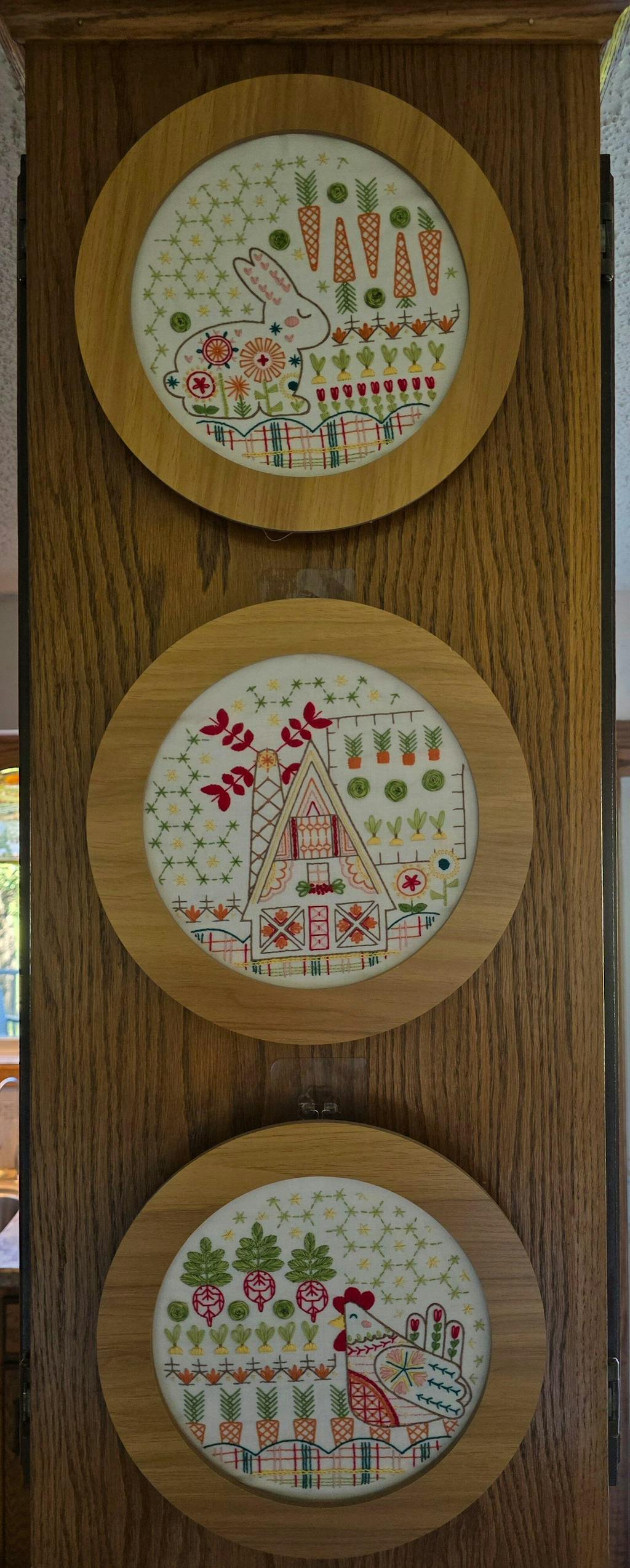 Country Garden Collection Bundle is a set of 4 country garden kits. There are three 8" in-the-hoop kits and one 11"x14" sampler kit. You'll use a dozen classic hand embroidery stitches and a shared color palette to stitch kitchen garden scenes.
