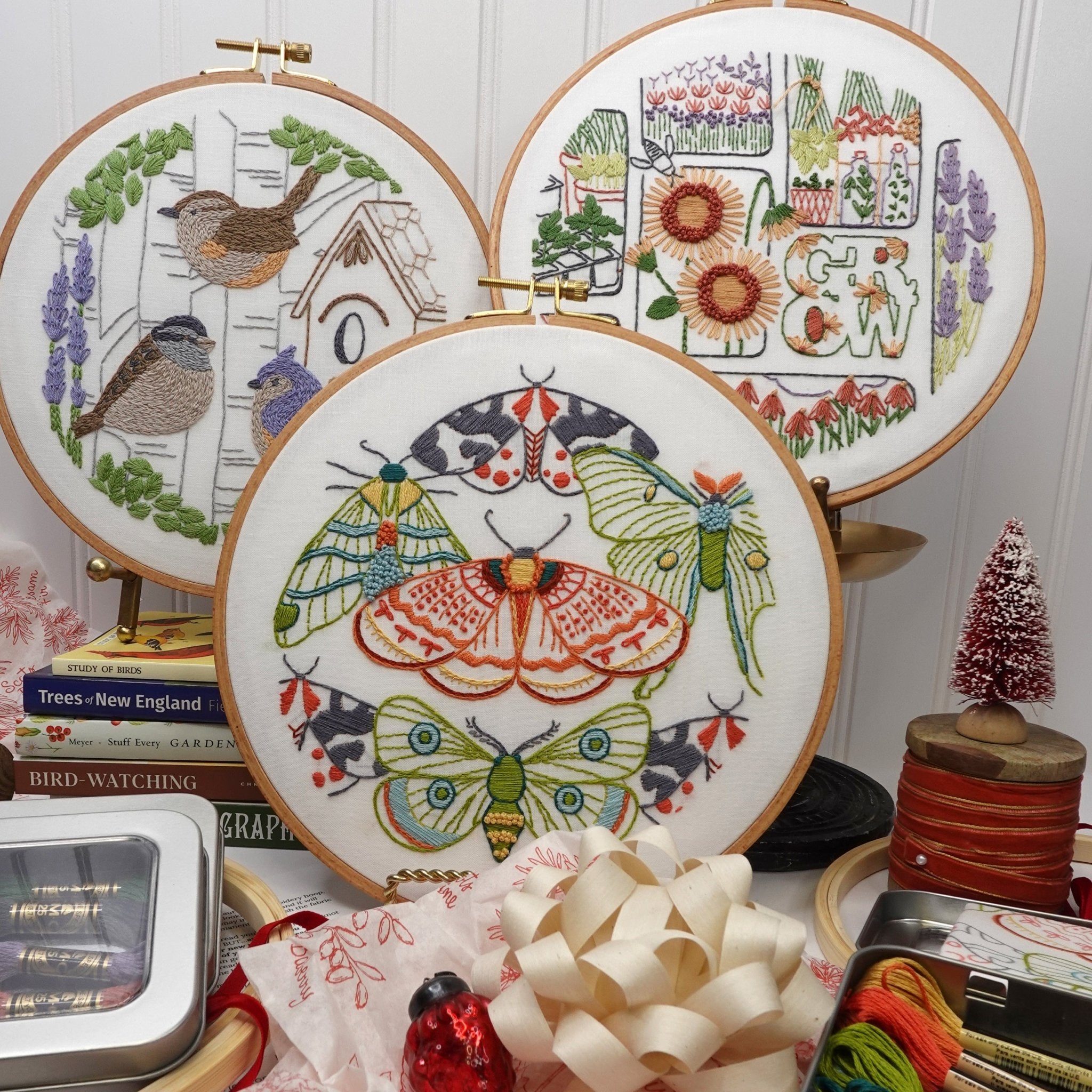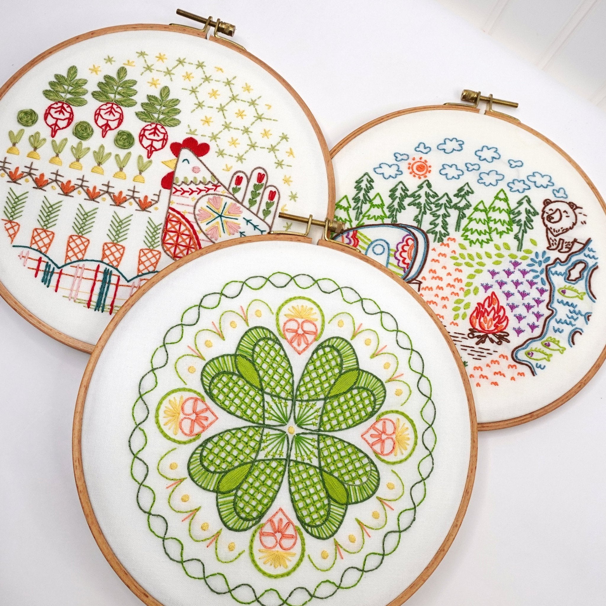 Our hand embroidery patterns are pre printed to fabric in permanent color making them ready-to-embroider with no transfer needed. Complete stitching how-tos are included. You supply hoop and floss.