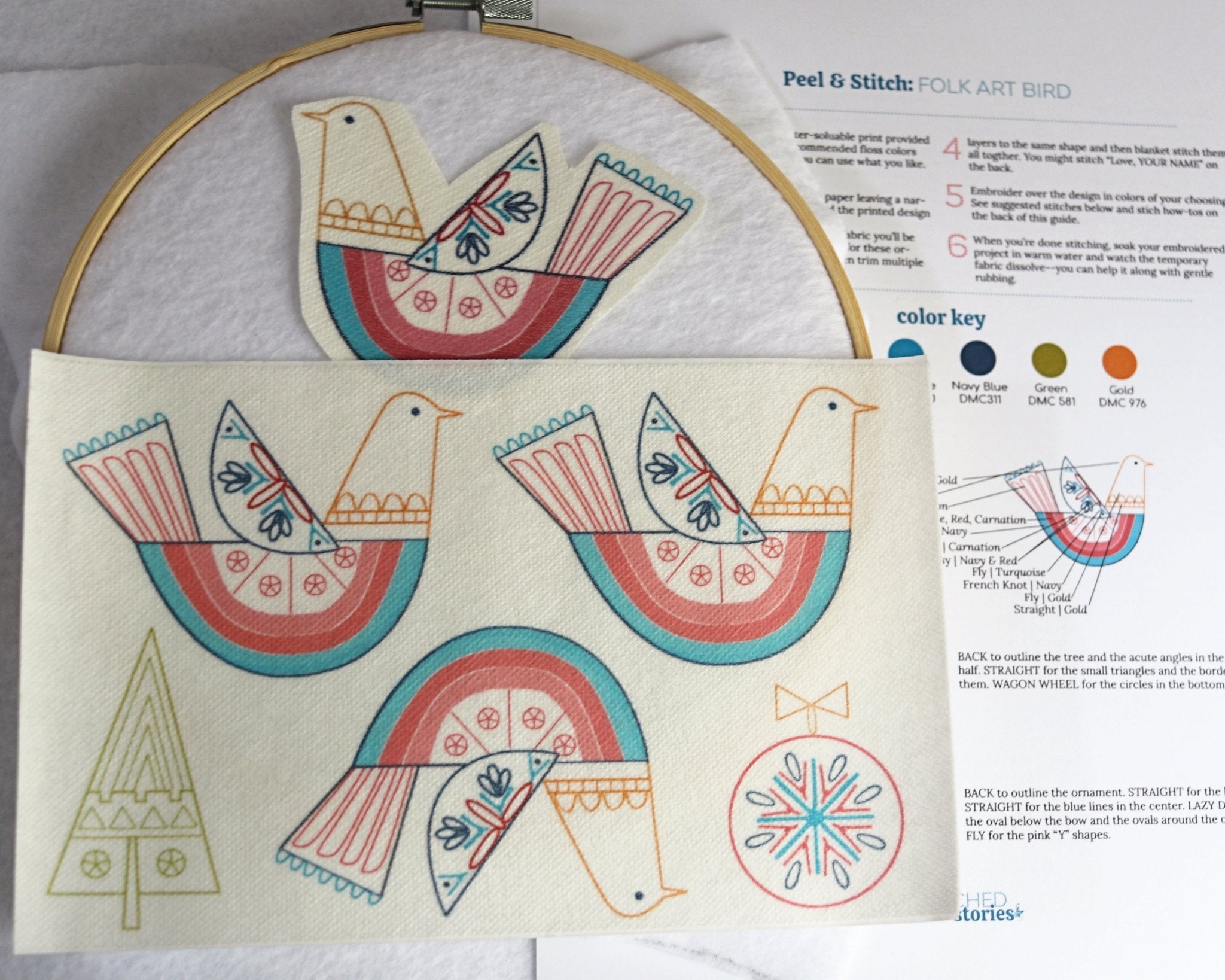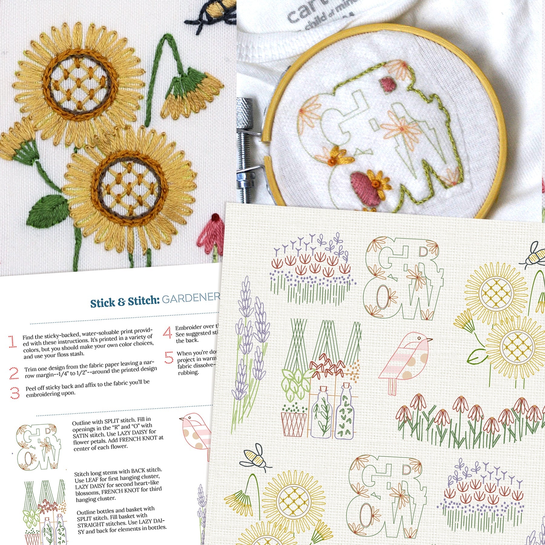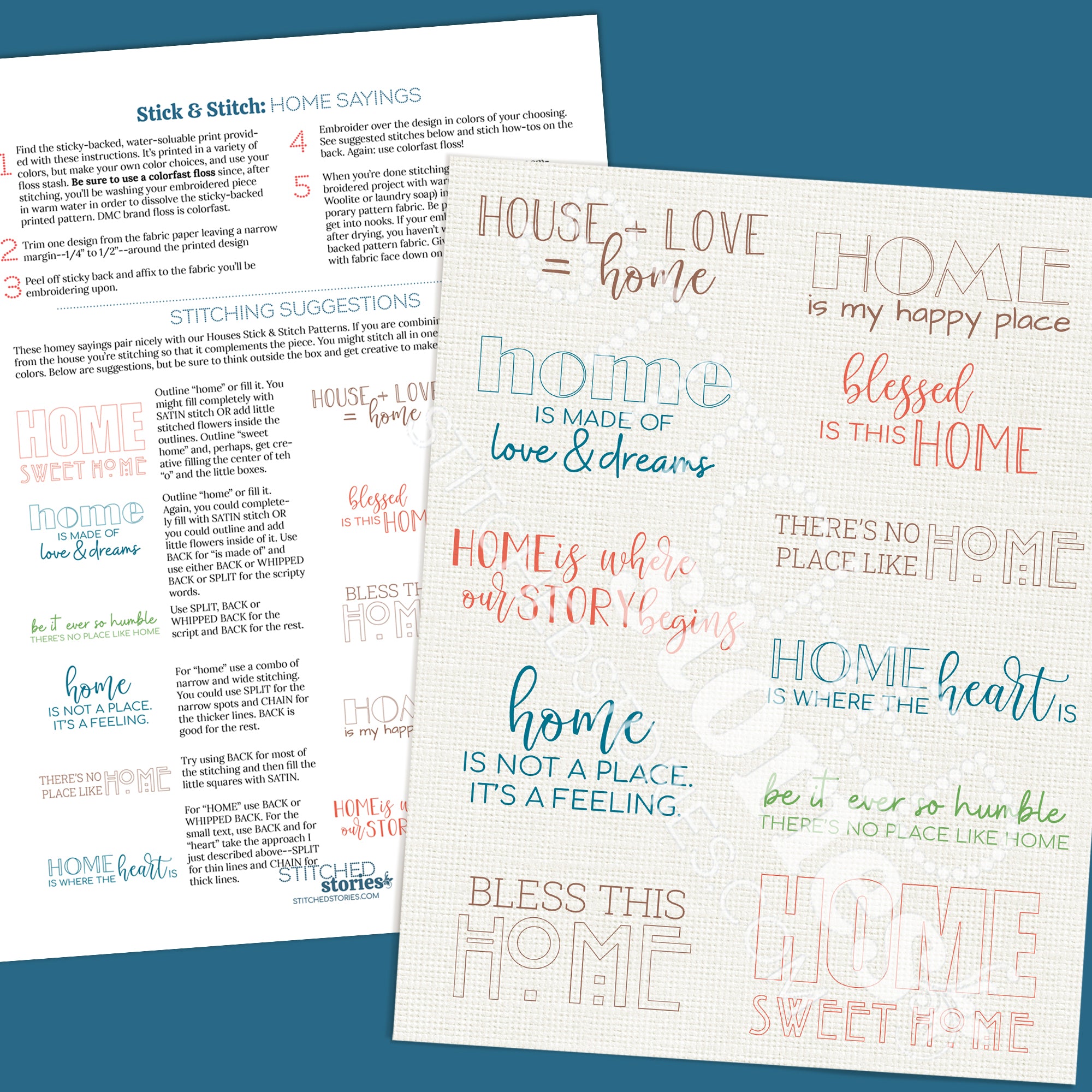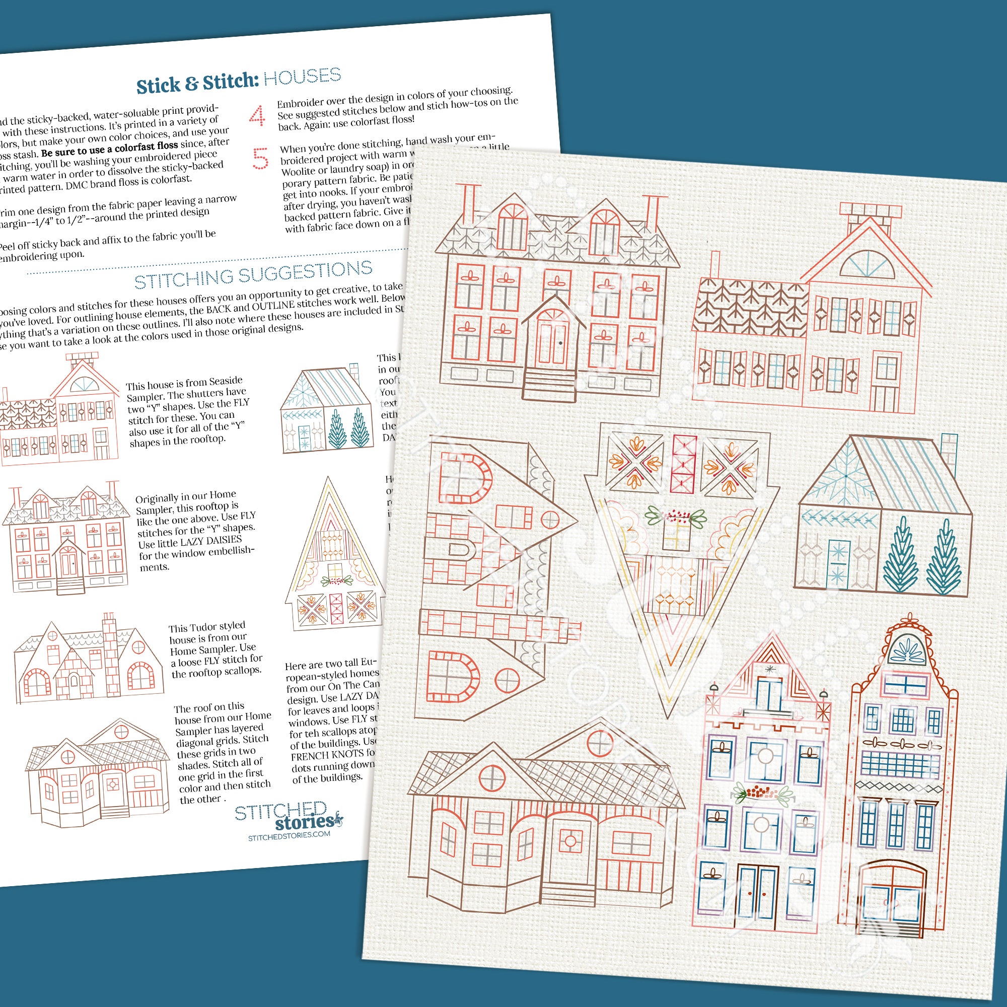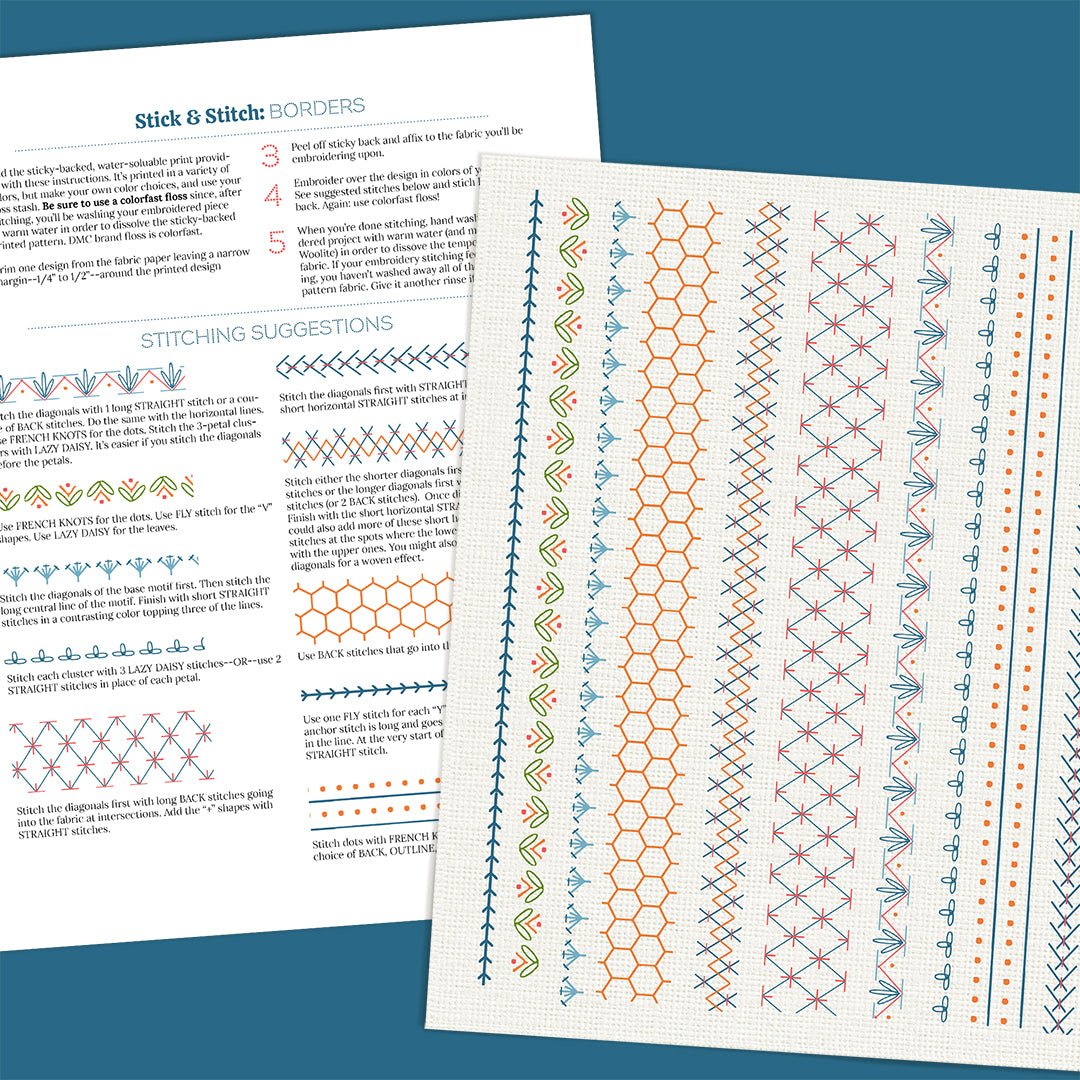 Use our Stick and Stitch Embroidery Patterns to hand embroider Stitched Stories designs to your own fabric projects including clothing, tea towels, pillow-cases, and totebags. Patterns are printed to one 8.5"x11" sheet of Sulky-brand sticky-backed water-soluble fabric. Brief stitching suggestions included.