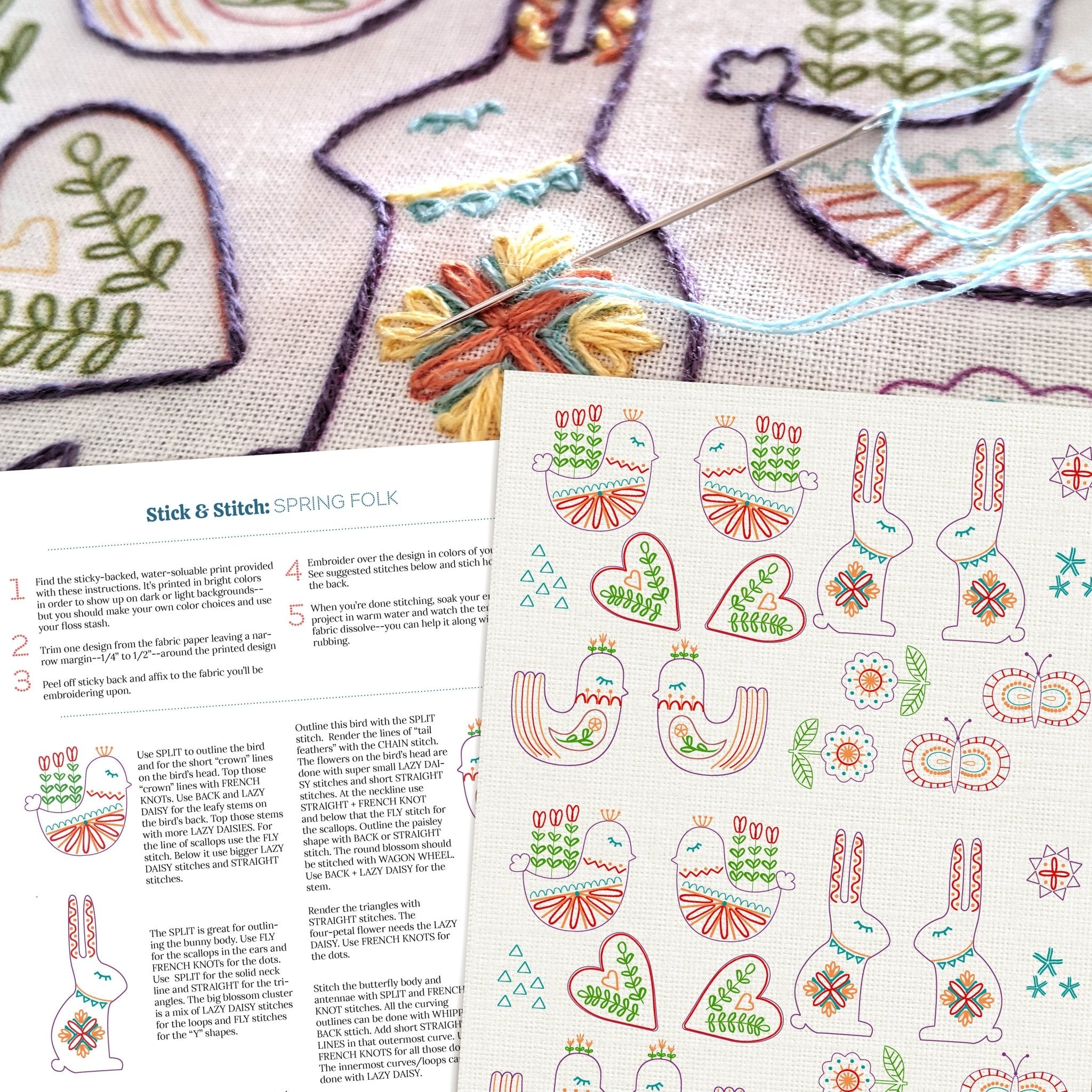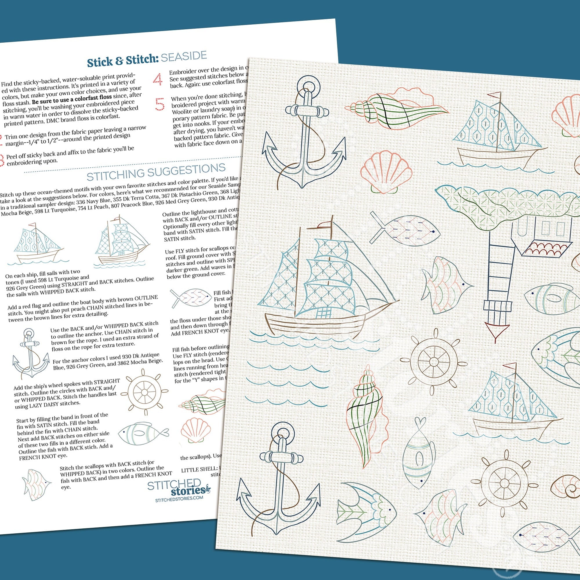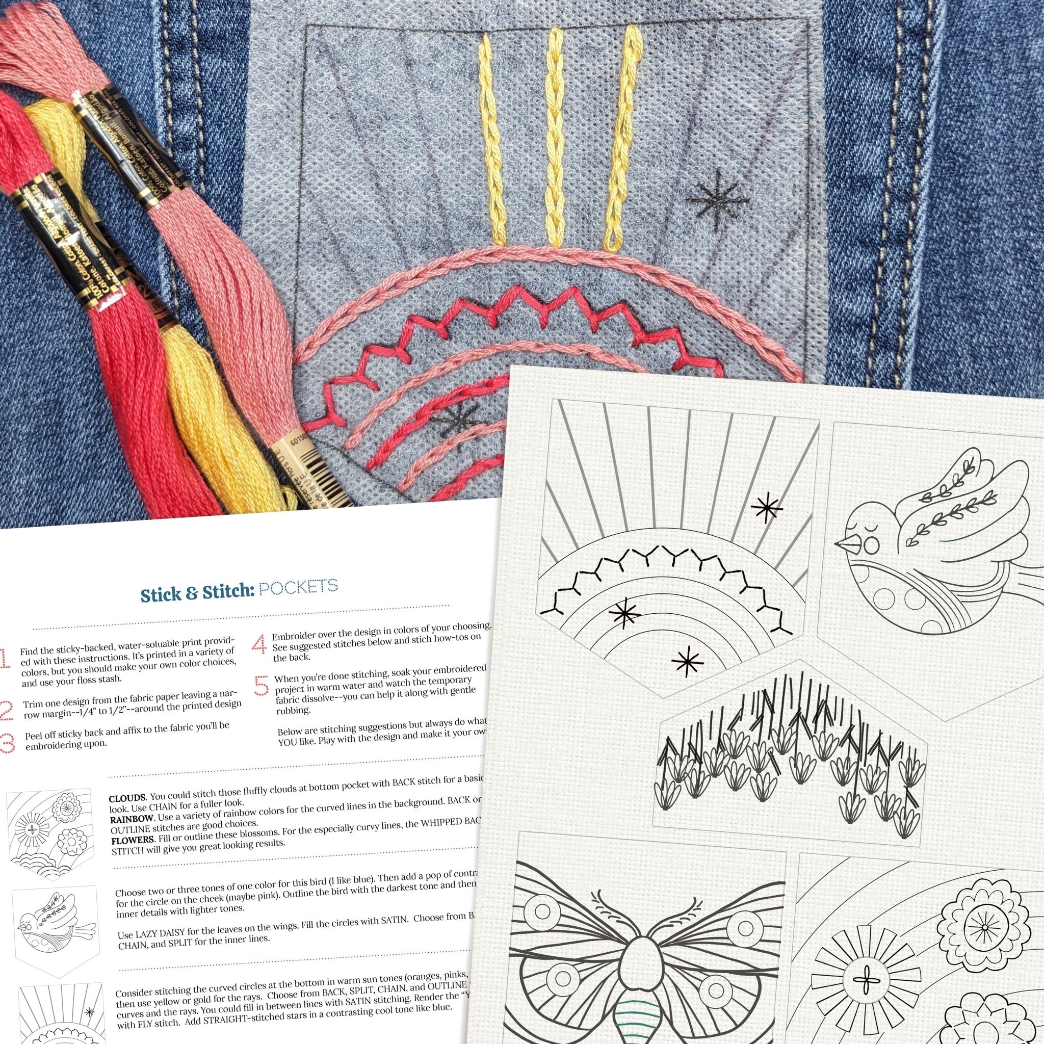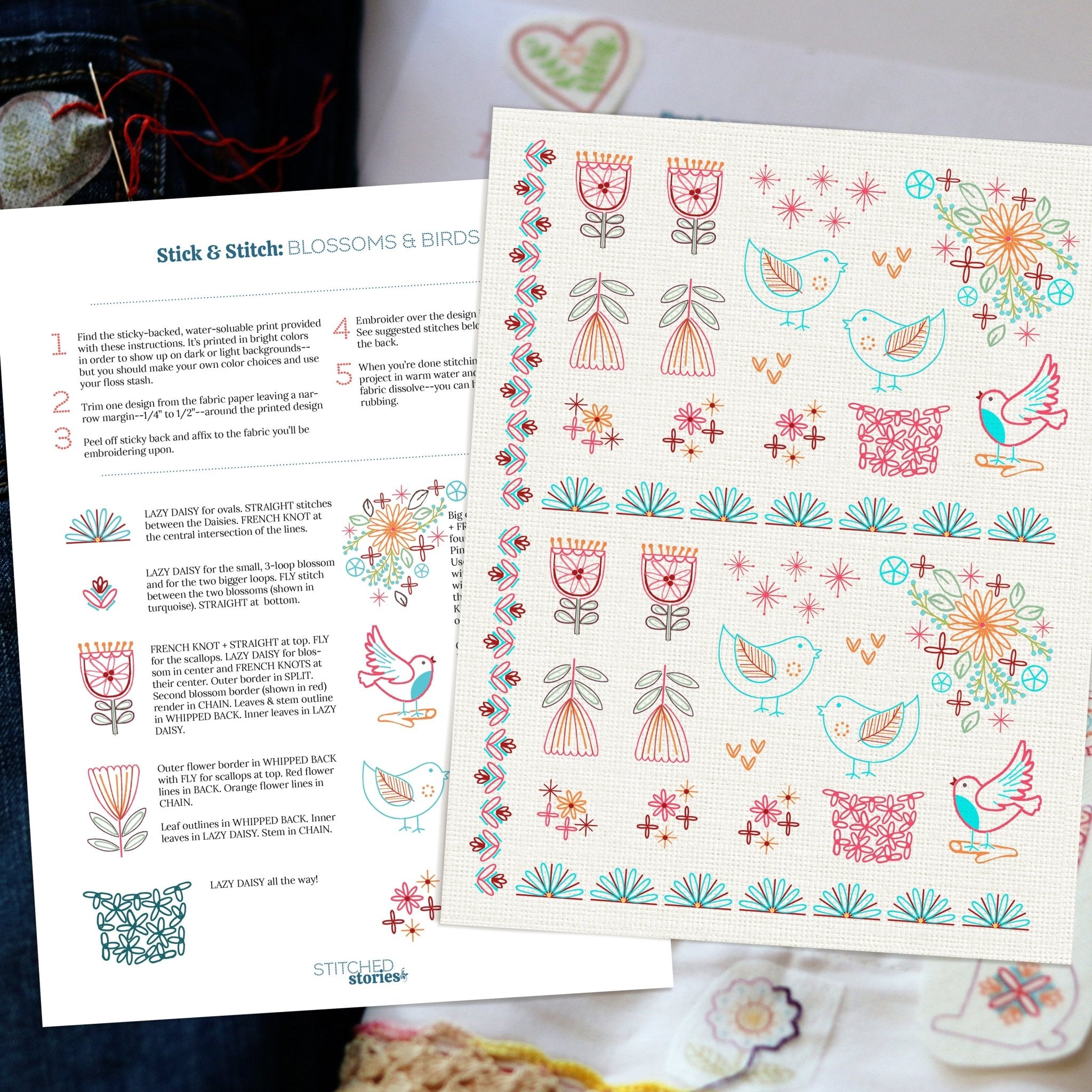 Use our Stick and Stitch Embroidery Patterns to hand embroider Stitched Stories designs to your own fabric projects including clothing, tea towels, pillow-cases, and totebags. Patterns are printed to one 8.5"x11" sheet of Sulky-brand sticky-backed water-soluble fabric. Brief stitching suggestions included.