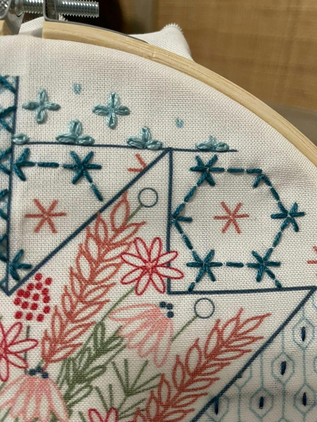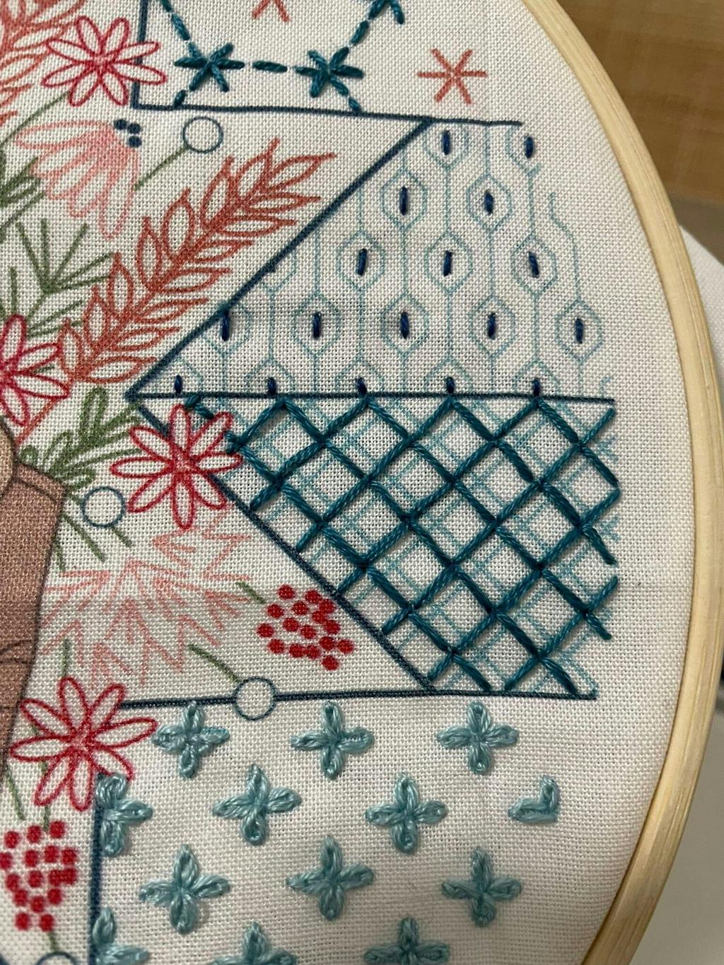 I'm currently stitching this pattern, and it has been super enjoyable to do. Not only am I perfecting stitches that I'm familiar with, but I'm also getting to practice stitches that I sometimes avoid or don't understand very well. This is really given me an opportunity to make something beautiful that I'm going to give as a gift and also challenge myself.